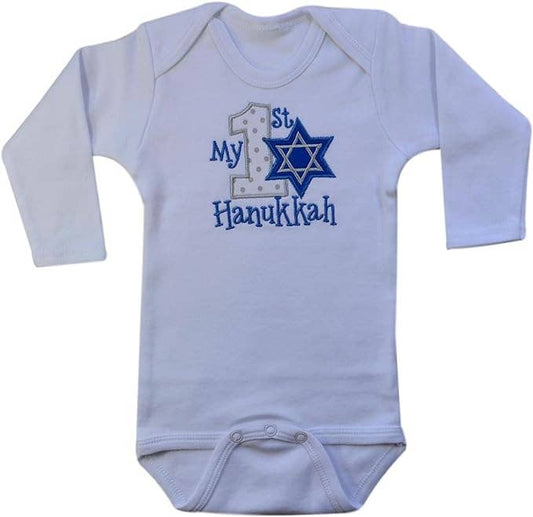 My First Hanukkah Jewish Holiday Handmade Embroidered Onesie