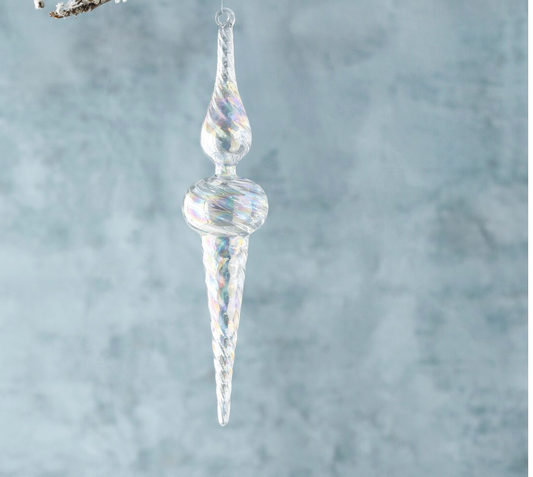 PRE ORDER Icy Crystal Swirl Glass Finial Ornament