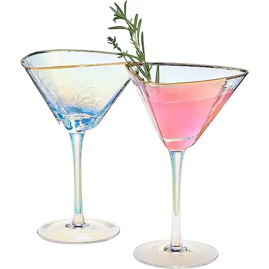 Iridescent Hammered Martini Glasses - Set of 2 Gold Rim 8oz