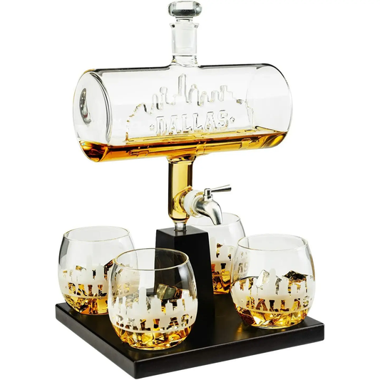 Dallas City Skyline Decanter Dispenser w/ 4 Whiskey Glasses
